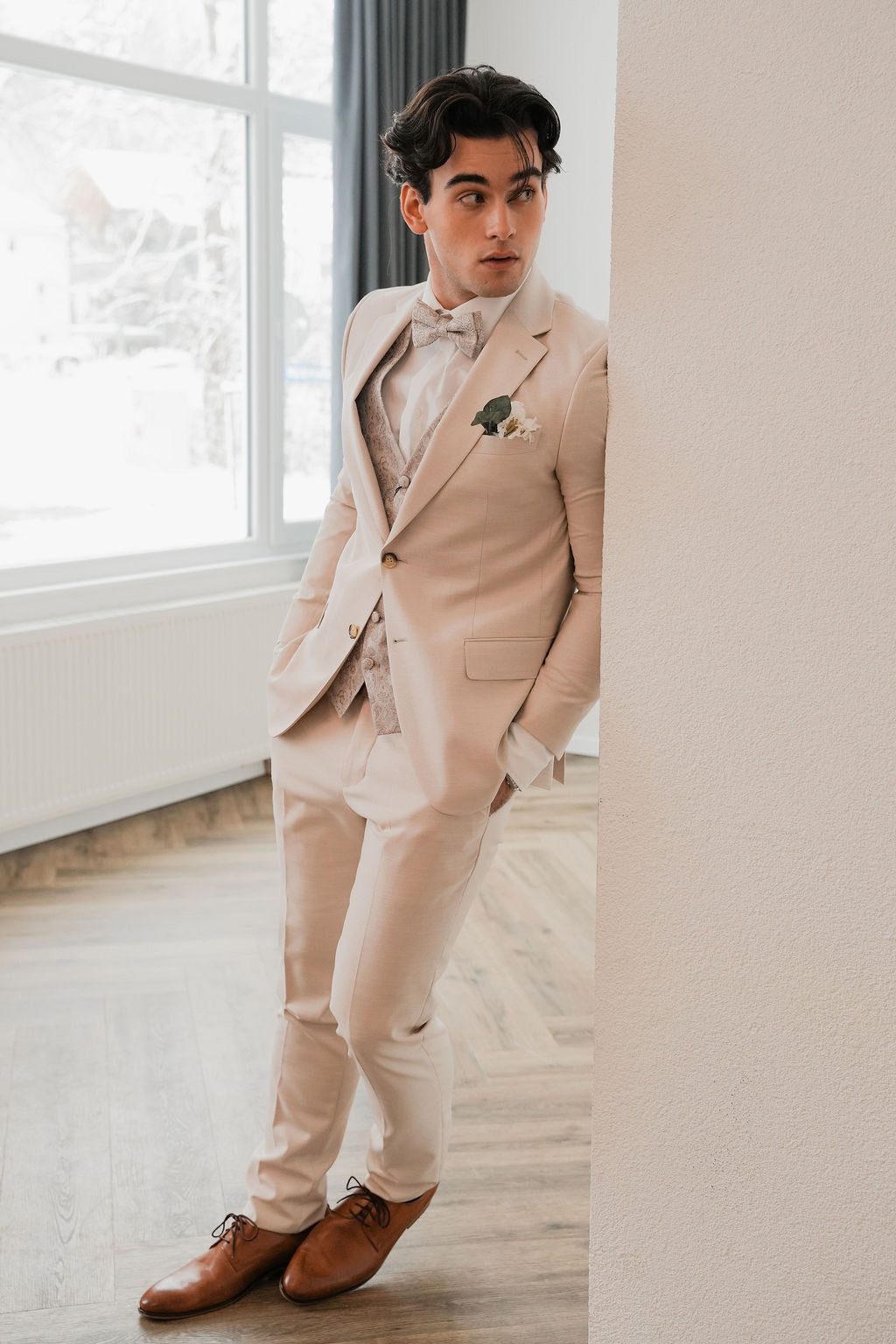 Vom klassischen Smoking bis zum modernen Slim-Fit Anzug – in unserer Herrenlounge findet jeder Bräutigam seinen perfekten Look. Hochwertige Stoffe, perfekte Passform und stilvolle Details für den wichtigsten Tag.